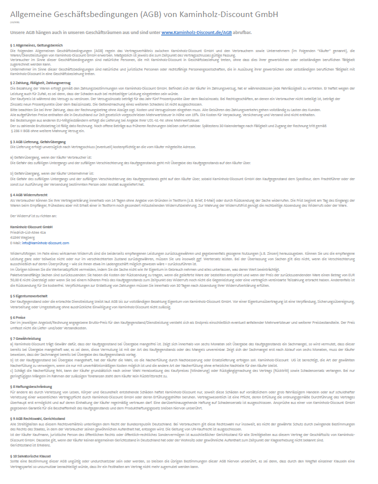 Allgemeine Geschäftsbedingungen (AGB) von Kaminholz-Discount GmbH